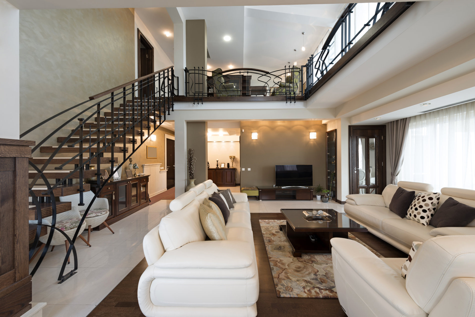 Duży salon ze schodami