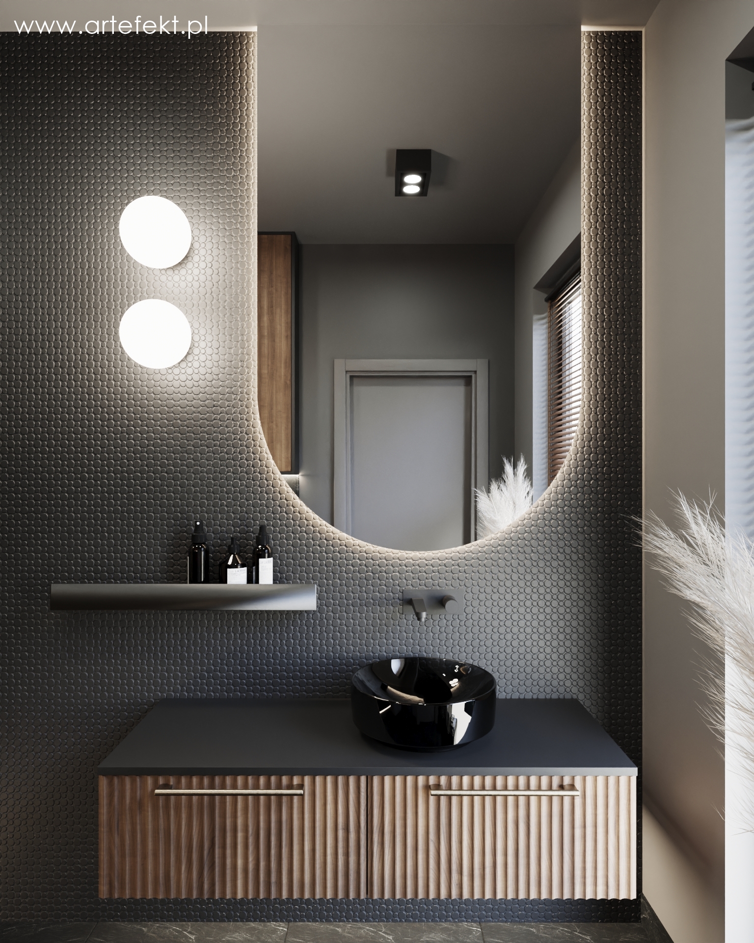 łazienka z czarną mozaiką