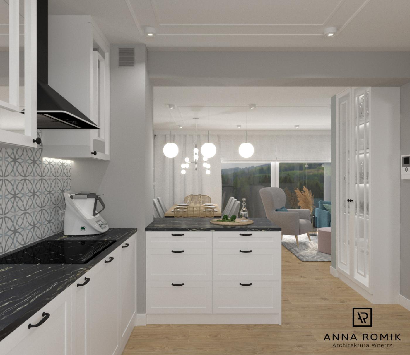 Pozostałe zdjęcia w projekcie: Projekt kuchni otwartej z dużymi oknami
