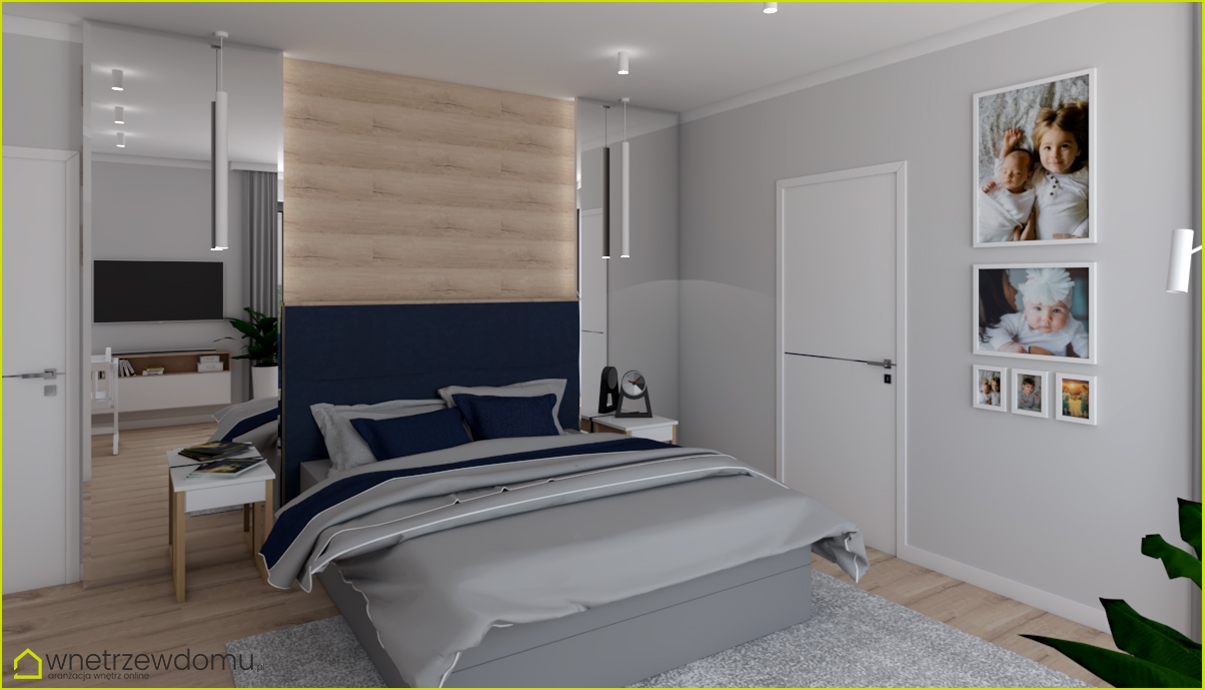 Pozostałe zdjęcia w projekcie: Sypialnia z motywem drewna na ścianie